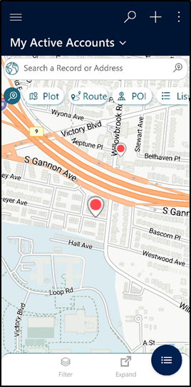 This search zooms the map to the area where the required record is plotted. The preferred pushpin blinks in quick succession to highlight its position from among the records.