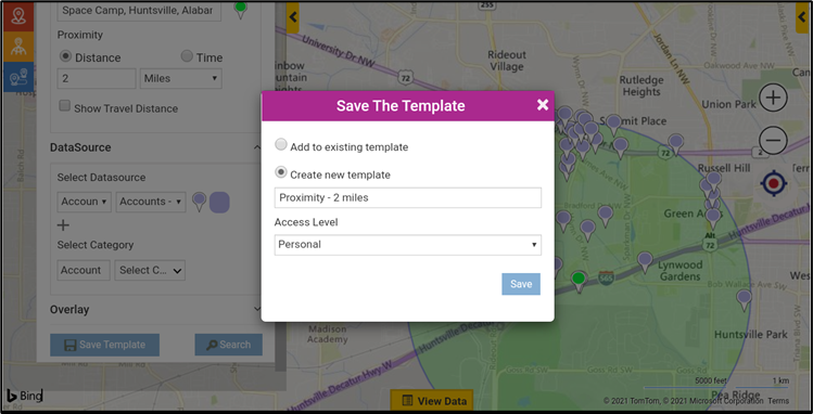 Users can save the plotted search criteria as a template, so as to open the template directly instead of searching on the map again.