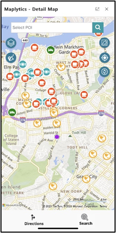 **Set As POI Location**: This option helps the user to set the center point for the Point of Interest (POI) searches like ATMs, restaurants, Airports, etc. Once this location is set as the POI location, the user can search for different POIs around this location. Users can choose the icons or the locations from the list of ‘others’ or enter a keyword to search for the respective POI locations on the map.