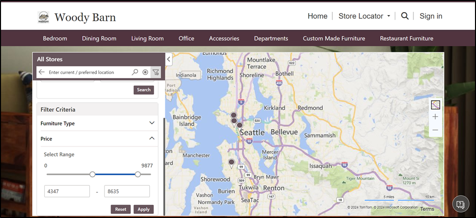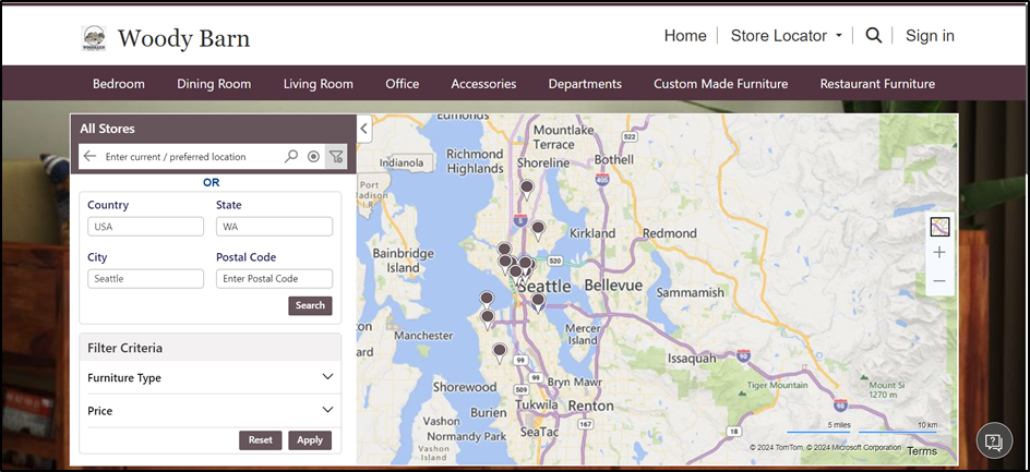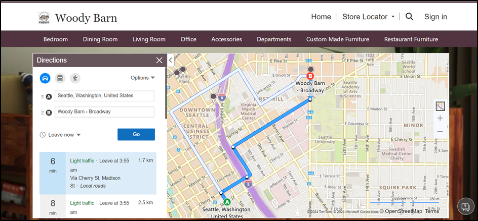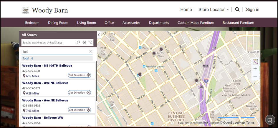 Let’s consider you have a website Woody Barn which is a Furniture Store Locator available for all. Suppose Ron has recently shifted to a new city. He is confused about shopping locally and needs to buy a few furniture pieces. But with technology at his fingertips, Ron has a quick solution. He checks out your Website of a local furniture store chain, plots his current location, and finds out the store branches near his location.